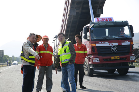 在公司路段寧向K1643+800處左右,路面銑刨作業(yè)正在緊張地進(jìn)行著,張建平看到施工人員在銑刨車上駕駛著,監(jiān)理單位工作人員在現(xiàn)場(chǎng)低頭觀察著,工程養(yǎng)護(hù)部監(jiān)管人員王劍也認(rèn)真地盯著銑刨車經(jīng)過(guò)的路面……“辛苦了!”張建平上前與大家打了聲招呼。然后向大家了解當(dāng)天的工程安排和進(jìn)度,以及正在進(jìn)行的施工作業(yè)情況,詢問(wèn)了有哪些困難和問(wèn)題,提出了一些施工中的注意事項(xiàng),特別強(qiáng)調(diào),要注意安全,要視質(zhì)量為生命,務(wù)必保質(zhì)保量地完成養(yǎng)護(hù)攻堅(jiān)工作。