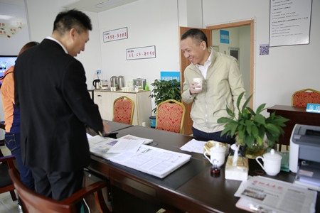 圖為集團(tuán)副董事長(zhǎng)、總經(jīng)理張建平在股權(quán)黃巖收購(gòu)點(diǎn)檢查
