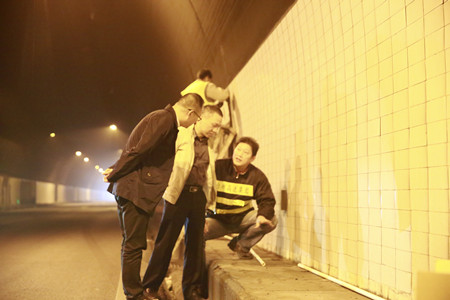 圖為集團(tuán)副董事長(zhǎng)、總經(jīng)理張建平在黃土嶺隧道整治施工現(xiàn)場(chǎng)檢查