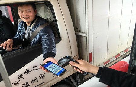 “嘀!”掃碼成功!臺州高速臺州收費(fèi)所出口車道,黃師傅掏出手機(jī)打開支付寶APP,選擇首頁“付款”,手機(jī)對準(zhǔn)安裝在收費(fèi)窗口外側(cè)的掃碼設(shè)備,成功支付通行費(fèi),隨即拿到通行發(fā)票,車道欄桿自動抬桿放行。掃碼繳費(fèi)出站僅用了幾秒種。這是臺州高速公路支付寶移動支付通行費(fèi)第一輛車。“今天真是運(yùn)氣,正好沒帶現(xiàn)金,沒想到高速也可以支付寶支付通行費(fèi)了!”黃師傅贊嘆道,“現(xiàn)在出門就帶手機(jī),以前有次忘帶錢包,結(jié)果到了出口才想起來,于是車子里到處找零錢。太尷尬了。”
