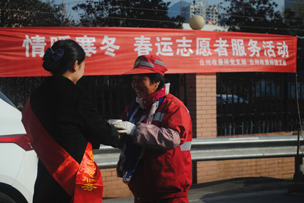 臺州收費所開展“情暖寒冬”春運志愿者服務(wù)活動 1月22日上午,臺州收費所開展了“情暖寒冬” 春運志愿者服務(wù)活動。該所黨支部、團(tuán)支部成員共計10余人參加此次活動。
