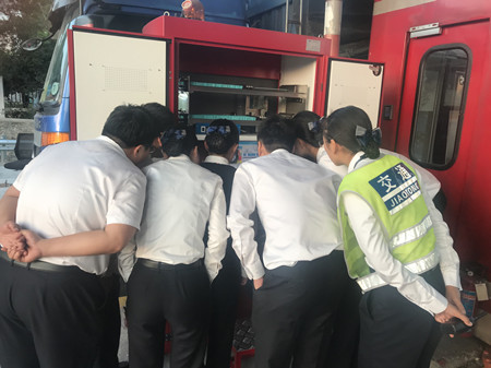 圖為工作人員在現(xiàn)場(chǎng)學(xué)習(xí)自動(dòng)發(fā)卡機(jī)的操作功能