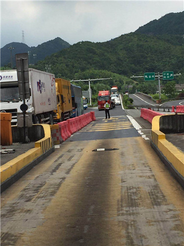 已入三伏天,熱浪席卷大地,透藍(lán)的天懸著火球般的太陽炙烤著大地。 8:30,正是交接班時(shí)間,由于四號崗?fù)ぢ访嬲谑┕ぃ瑹o法使用,面對這經(jīng)常出現(xiàn)的大流量,出口承受著巨大的壓力,稍有狀況,就會(huì)出現(xiàn)嚴(yán)重的擁堵現(xiàn)象。班長李寧一邊提醒大家一定要加快收費(fèi)速度,自己一邊一直站在一號崗?fù)ね饷妫P(guān)注著各個(gè)車道可能出現(xiàn)的突發(fā)情況。收費(fèi)員蔣弓則奔走于5號車道和ETC車道之間,處理著隨時(shí)而來的誤闖車和黑名單車輛。所有的機(jī)動(dòng)人員、行政人員已全部到崗待命。