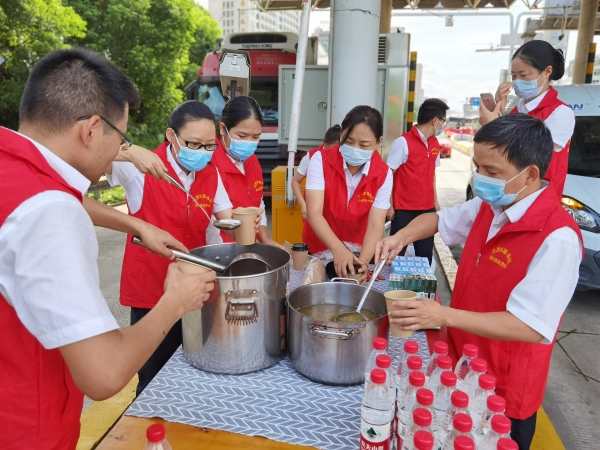 活動開展前,大家集思廣益,準備好了綠豆湯、蓮子湯、礦泉水、藿香正氣水、風油精、人丹等防暑降溫用品。一杯綠豆湯代表一片心意,一份貼心服務送一份清涼。當一份份清涼和關懷送至他們手中的時候,司乘人員們先是感到驚訝,隨后連忙道謝。 “趕了這么久的路,在車上的確又熱又累,一下高速就有清涼的東西送到手上,疲勞一下都煙消云散了,為你們的服務點贊!”一位外地貨車司機笑著說。 活動中,志愿者在遞上消暑用品的同時還不忘向司乘宣傳夏季安全行車注意事項。收費員在文明服務中也增加“請注意防暑降溫”、“請不要疲勞駕駛”等文明服務提醒用語。收費所做的不僅僅是收費,更是用心去了解司乘人員的需求,用真誠傳遞理念,司機臉上的笑容就是最好的回報。