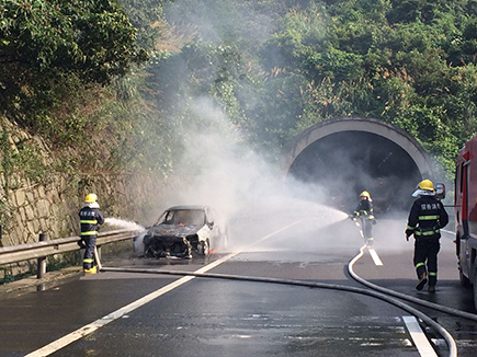 7月14日下午4點18分,一輛轎車在塘嶺隧道寧向出口一百米處自燃起火。轎車被燒成空殼,所幸火災沒有造成人員傷亡。