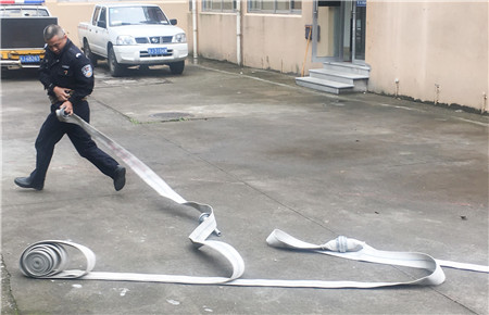 圖為裁判員認真打分 黃土嶺隧道所則組織開展了消防水帶連接使用鋪設訓練。 此次訓練以計時比賽的形式進行,執勤隊員分組展開模擬演練,每組兩次機會,取平均分記入考核。參練人員個個激情高漲,積極投入,演習場面熱鬧非凡。每組隊員在第一輪比賽后都抓緊互相探討動作要領和水帶掐口的連接方法等,確保第二局能夠更準確、更迅速地完成連接。