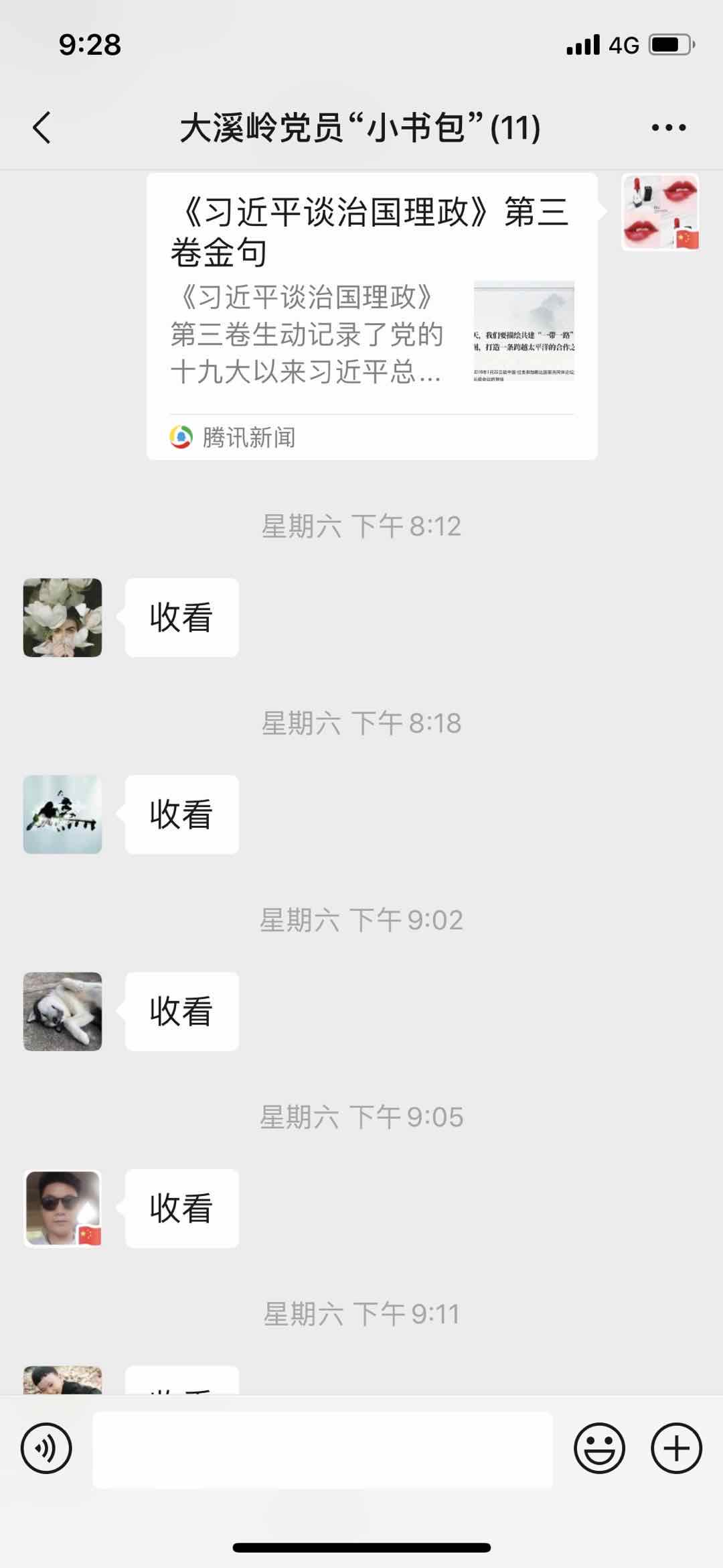 黨員“小書包”的建立,進(jìn)一步拓展和暢通了聯(lián)系黨員的信息渠道,可以24小時在線聯(lián)系黨員、征求意見,能在線進(jìn)行實(shí)時回復(fù)和互動,同時可以通過微信群及時發(fā)布上級文件精神、習(xí)近平總書記重要講話內(nèi)容、學(xué)習(xí)教育心得、會議通知等等,進(jìn)一步提高學(xué)習(xí)教育效能。 黨員“小書包”的建立,讓黨員們的學(xué)習(xí)內(nèi)容不受書本限制,學(xué)習(xí)教育不受地域、場所的限制,在繁忙的工作學(xué)習(xí)之余,大家可以在微信群中了解當(dāng)前時下最新的學(xué)習(xí)內(nèi)容、信息和動態(tài),相互學(xué)習(xí),交流體會,無形提升自己的政治素養(yǎng)。 黨員“小書包”的建立,實(shí)現(xiàn)了黨組織和黨員之間“親密”、“即時”、“微距”的接觸,加強(qiáng)了黨員同黨組織之間的信息互動。通過“小書包”的建設(shè),大溪嶺學(xué)習(xí)教育時刻保持鮮活的生命活力和時代氣息,形成了“輕松自主學(xué)習(xí)、實(shí)時互動交流”的良好學(xué)習(xí)氛圍,提供了更好的動力。