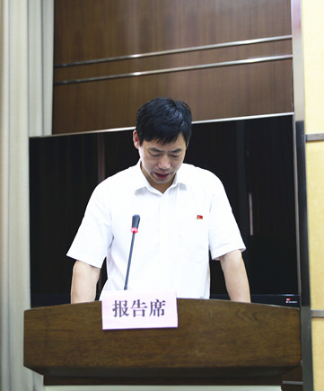 圖為公司副總經(jīng)理陳保衛(wèi)宣讀《關于轉讓臺州高速泰和房產(chǎn)公司股權的議案》