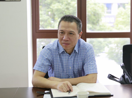 圖為集團副董事長、總經理張建平認真聽取相關人員下階段工作安排匯報