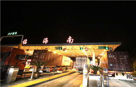 當晚20時許,一切整裝就緒,分流正式開始。瞬間,原來還空曠的臨海南收費廣場車輛絡繹不絕,轟鳴聲不絕于耳。車流各收費所班子成員全數在崗管控現場,當班班組一如既往地沉穩應對,微笑接卡、唱收唱付、禮貌迎送,行政班人員輪流值班,時刻準備旁站和補崗。