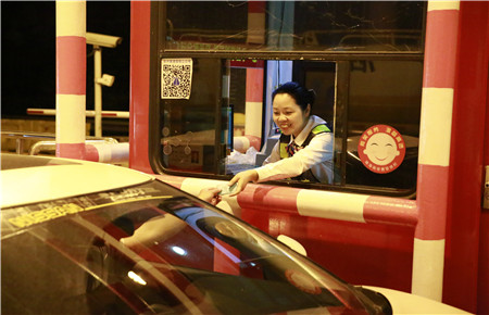 時間一分一秒地走著,收費員們在分流保暢中,堅持以飽滿的熱情,規范使用迎送手勢和文明用語,做到了“車輛增多不減質,文明服務不打折”。同時旁站人員加強關注過程車輛,不時為有需要的司乘人員提供指路問詢的通行服務。