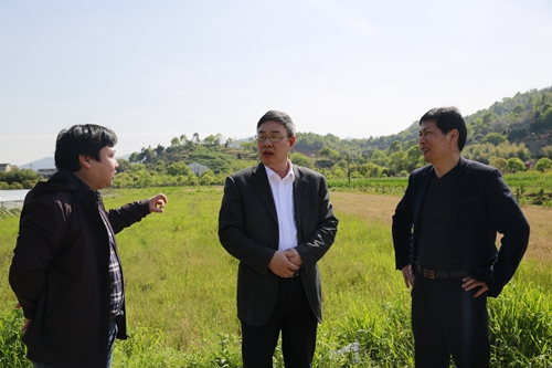 圖為公司領(lǐng)導(dǎo)陳文波在岙林村考察停車區(qū)地塊