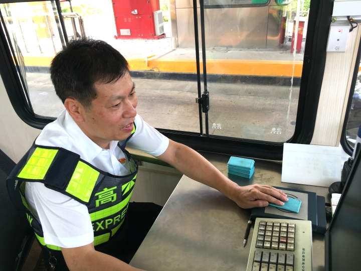 而在對(duì)面發(fā)卡的安全總監(jiān)項(xiàng)同富正襟危坐,等待著車(chē)子的駛?cè)耄?/span>“記住動(dòng)作就忘記微笑,笑起來(lái)又忘記要說(shuō)什么......真有點(diǎn)手忙腳亂的,做好收費(fèi)員,不容易?!?/span>
