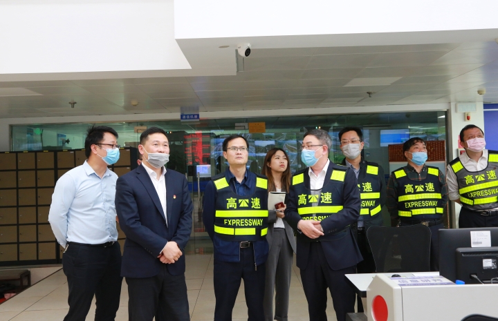 5月1日上午,小長(zhǎng)假第一天,市交投集團(tuán)總經(jīng)理金寶敏帶領(lǐng)副總經(jīng)理徐亮等人,到臺(tái)州高速集團(tuán)一線開展安全大檢查。高速集團(tuán)董事長(zhǎng)、總經(jīng)理陳文波,安全總監(jiān)項(xiàng)同富,征費(fèi)管理部有關(guān)人員陪同檢查。 “你們辛苦了。”金寶敏一行先后來(lái)到臺(tái)州收費(fèi)所和臺(tái)州高速公路應(yīng)急救援指揮中心,對(duì)一線工作人員致以親切的問候,同時(shí)檢查高速各路段車輛運(yùn)行情況。