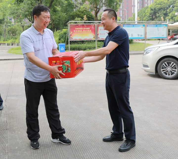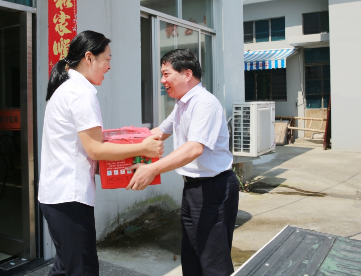 沁人心脾|臺州高速集團開展“夏日送清涼”活動 7月15日上午,臺州高速集團開展“夏日送清涼”活動。集團黨委書記、董事長、總經理陳文波,副總經理陳保衛、羅小將、章海峰、工會主席項同富兵分兩路,帶領送清涼慰問組同志,深入高速交警、路政、匯通養護公司、各收費所、隧道所、中心、子公司等單位看望慰問值守人員并送去慰問品,向冒著高溫酷暑辛勤工作的工作人員表示敬意和慰問。感謝廣大員工在高溫下堅守崗位、辛勤勞動,集團領導親手送上防暑降溫的紅棗、綠豆、蓮子、飲料等物資,為在炎炎夏日中堅持工作的一線廣大人員送去了絲絲清涼。