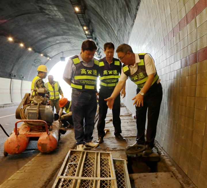 上午,臺(tái)州高速集團(tuán)黨委書記、董事長、總經(jīng)理陳文波,公司黨委委員、總工程師江輝,以及工程部相關(guān)人員一起來到公司所轄路段,檢查施工進(jìn)展情況。