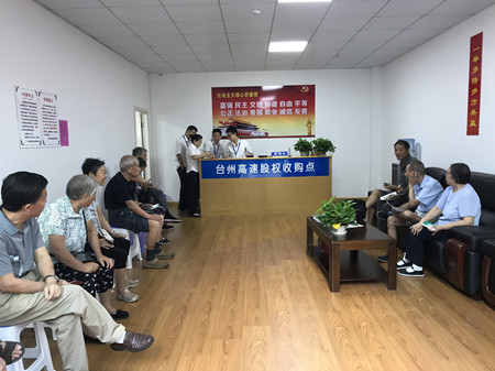 9月11日早上8點(diǎn)未到,溫嶺、仙居、椒江等其它收購(gòu)點(diǎn)已有不少股東排隊(duì)等候辦理股權(quán)轉(zhuǎn)讓手續(xù)。自9月8日臺(tái)州高速股權(quán)收購(gòu)工作正式啟動(dòng)以來(lái),各個(gè)收購(gòu)點(diǎn)現(xiàn)場(chǎng)“生意”火爆。工作人員主動(dòng)提前上班,接待各位股東。