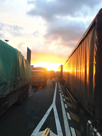 圖為分流現(xiàn)場 為保證車道安全、有序、暢通,該所認真對待,除做好零鈔、備用發(fā)票、備用打印機等常規(guī)的準備工作外,凌晨4點30分,行政值班人員、征費二班全體收費員便開始在車道嚴以待陣,接到分流通知后,開啟全部車道,同時ETC切換成人工。班長去內(nèi)廣場維持通行秩序,其中一名員工在外廣場指揮及做好導(dǎo)向工作,行政值班人員參與車道旁站,業(yè)務(wù)熟練的員工在崗收費,在場人員分工有序,密切配合。直至7點,隧道中排燈拆除完畢,收費車道上僅3個出口可以通行,不過在全體人員的共同努力下,未發(fā)生擁堵事件,該所順利完成分流工作。 夏蓮萍