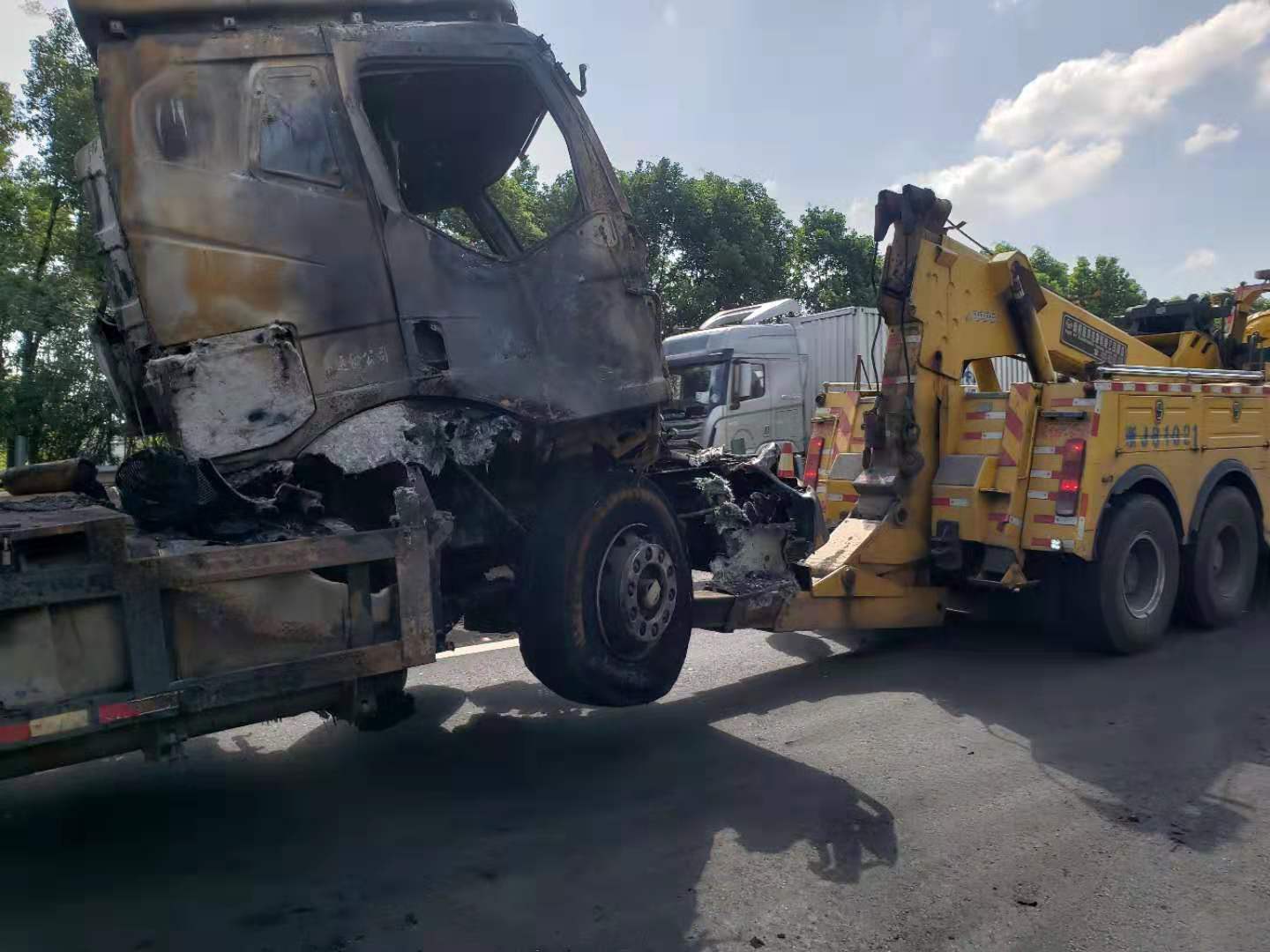 時間已經過去了2個多小時,堵車達到了十多公里,盡管當天的駕駛員都極有素質,沒有占用硬路肩,但大型救援車僅僅硬路肩還是不夠,還需要占用一部分主車道。每到開不過去的地方,毛慶榮就下車指揮前后車輛往超車道靠。