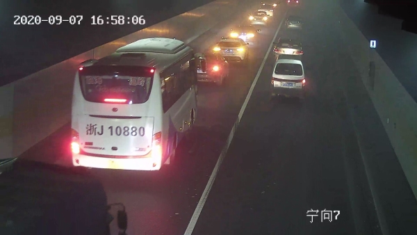 車子剛進(jìn)入隧道,火眼金睛的中控員徐海源立即察覺(jué),鎖定該畫面,經(jīng)過(guò)仔細(xì)辨認(rèn),該車沒(méi)有火光源,可能是車輛故障導(dǎo)致的。由于貨車不停地冒出濃煙,散發(fā)的濃煙彌漫在整個(gè)隧道里,造成隧道內(nèi)的車輛視線不清,人員呼吸困難,后方途經(jīng)車輛紛紛打開(kāi)雙閃燈,或緩行、或停車、或避讓,一時(shí)間,交通秩序混亂,大量的車輛滯留在隧道里,而后方來(lái)車越來(lái)越多,情況越來(lái)越緊急。中控員見(jiàn)狀,第一時(shí)間向監(jiān)控中心匯報(bào)情況,監(jiān)控中心要求密切關(guān)注該輛車的行駛情況,同時(shí),把該情況報(bào)告給執(zhí)勤隊(duì)長(zhǎng)蔡星,他要求中控員打開(kāi)寧向排風(fēng)扇,正向排風(fēng),疏散濃煙,同時(shí)做好應(yīng)急準(zhǔn)備工作。