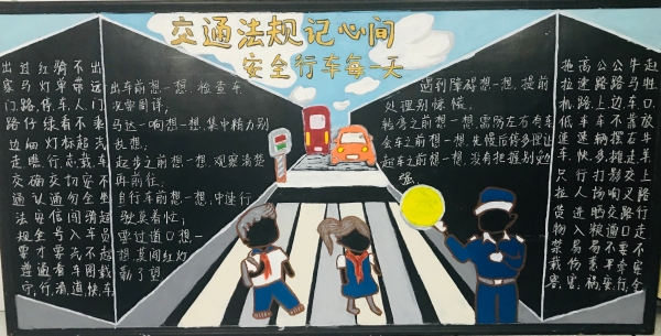 活動(dòng)前期,臨海南收費(fèi)所臨時(shí)組建五人板報(bào)小分隊(duì),充分利用空余時(shí)間搜集有關(guān)安全教育資料,對(duì)內(nèi)容、畫(huà)面進(jìn)行認(rèn)真整理、篩選。最終決定三個(gè)板塊,以提高安全教育為目的,以不同風(fēng)格主題來(lái)呈現(xiàn),從多方面、多角度設(shè)計(jì)與繪制,達(dá)到了更好的安全教育宣傳效果。 活動(dòng)開(kāi)展后,參與者們分配好各自的任務(wù)后,出黑板報(bào)的工作便熱火朝天地展開(kāi)了。大家利用自身的特長(zhǎng),通過(guò)粉筆字、繪畫(huà)等藝術(shù)形式,對(duì)黑板報(bào)進(jìn)行了精心的設(shè)計(jì),主題鮮明,內(nèi)容充實(shí),圖文并茂,趣味性強(qiáng),全方位、多角度地宣傳了《消防安全》、《食品安全》、《交通安全》三大主題。其中在交通安全宣傳方面,如何使交通安全內(nèi)容,更加直觀形象、簡(jiǎn)單易懂的、眾人易于接受呢?大家通過(guò)反復(fù)嘗試,決定打破傳統(tǒng)模式,避免枯燥說(shuō)教,把交通宣傳教育知識(shí)融入到兒歌中,通過(guò)朗朗上口的兒歌形式,傳達(dá)一些基本的交通規(guī)則,幫助大家養(yǎng)成自覺(jué)遵守交通規(guī)則的意識(shí),提高自我安全防護(hù)能力。最后經(jīng)過(guò)大家日夜趕工,黑板報(bào)的工作在大家的共同努力下順利完成。