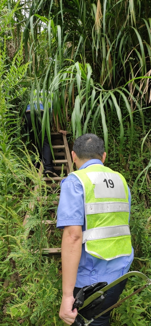 9月23日早上8點(diǎn)45分,中控員發(fā)現(xiàn)大溪嶺隧道北高位水池圖像模糊,照明燈不亮了。 為保障隧道消防安全,中控員對(duì)消防水池的水位需時(shí)時(shí)關(guān)注,萬一水池漏水無法及時(shí)查看,如遇火災(zāi),消防水供應(yīng)不上,后果不堪設(shè)想。隊(duì)長(zhǎng)意識(shí)到事情的嚴(yán)重性,即刻安排電工湯寧光和陳幸趕往北面山上的高位水池位置。初秋的山上植物茂盛,原來通往水池的小路早已淹沒在雜草間,隊(duì)員們提著工具,憑著記憶找小路,單手撥開雜草往山上走,到達(dá)高位水池之后,他們分工協(xié)作,一邊檢查線路,一邊抬開井蓋并下到水池檢查照明燈,經(jīng)過檢查后發(fā)現(xiàn)只是線路有點(diǎn)松動(dòng),陳幸馬上對(duì)線路進(jìn)行加固。