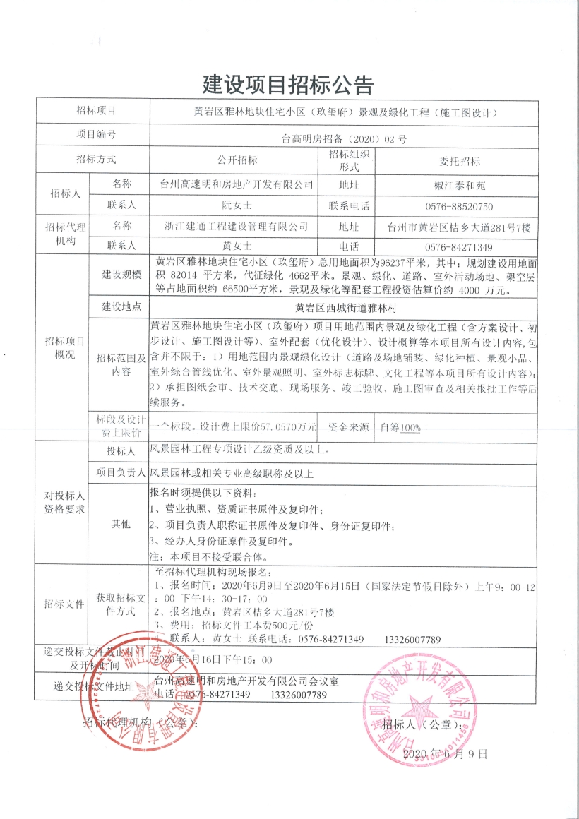 黃巖區(qū)雅林地塊住宅小區(qū)(玖璽府)景觀及綠化工程(施工圖設(shè)計)招標(biāo)公告