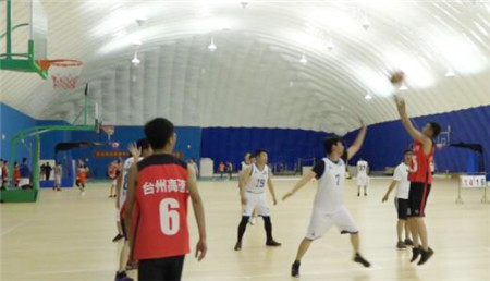 5月10日晚上,臺州體育場氣膜館內,不時傳來進球后的歡呼聲。一場由高速集團與基投集團進行的籃球友誼賽開始了。基投集團總經理助理鐘一鳴作為對方主力球員親自參加比賽。 隨著裁判一聲哨響,比賽開始,身穿白色球衣的基投集團籃球隊率先發起攻擊,因為是初次交手,面對不熟悉的對手,雙方失誤頻頻。很快基投籃球隊首先找到了手感,8號球員憑借身高和扎實的基本功,與隊友配合,里突外投,幫助基投籃球隊暫時領先。
