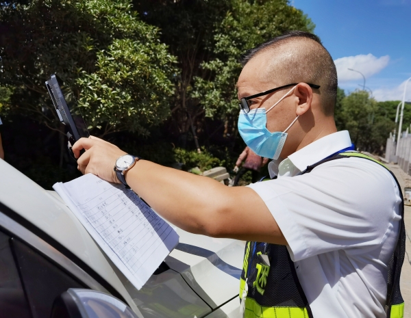 這是征費(fèi)四班班長鄭星和駕駛員的對話,他手持iPad,不停地在屏幕上滑動著、查詢著。天氣炎熱,大貨車開車時較為顛簸,3M膠軟化黏不牢,ETC設(shè)備容易脫落。ETC設(shè)備一旦掉落,則會提示“標(biāo)簽已失效”,就無法正常工作,不能實現(xiàn)不停車出入高速公路ETC車道,給來往司機(jī)和收費(fèi)人員增添了很多麻煩。為全力配合ETC服務(wù)需要,鄭星冒著酷暑高溫,不厭其煩地幫著司乘人員解決問題,一天下來工作服濕了又干,干了又濕,他就是臺州高速上的最美堅守者。